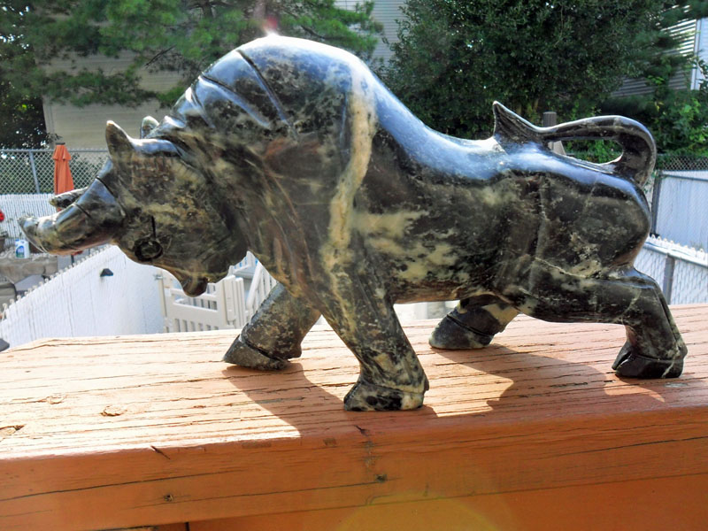 Exceptional and Beautiful Dushan Jade Bull Carving. Heavy in Weight 9.2 lbs. Measurements: 4 3/4” Tall 12” Long and 3 I/4” Thick. Colors: Black/Grey, Off White/Green Multi Colors. Been in My Collection Many Years and Very Well Kept in My Gallery Cabinet. Pictures shows all Angles of the Beautiful Bull Carving. Price: $425.00 Shipping and Handling: $45.00 Just a Simply Breath Taking Jade Bull Carving to Add to a Unique Collection. Taking. More Pictures on Request.
