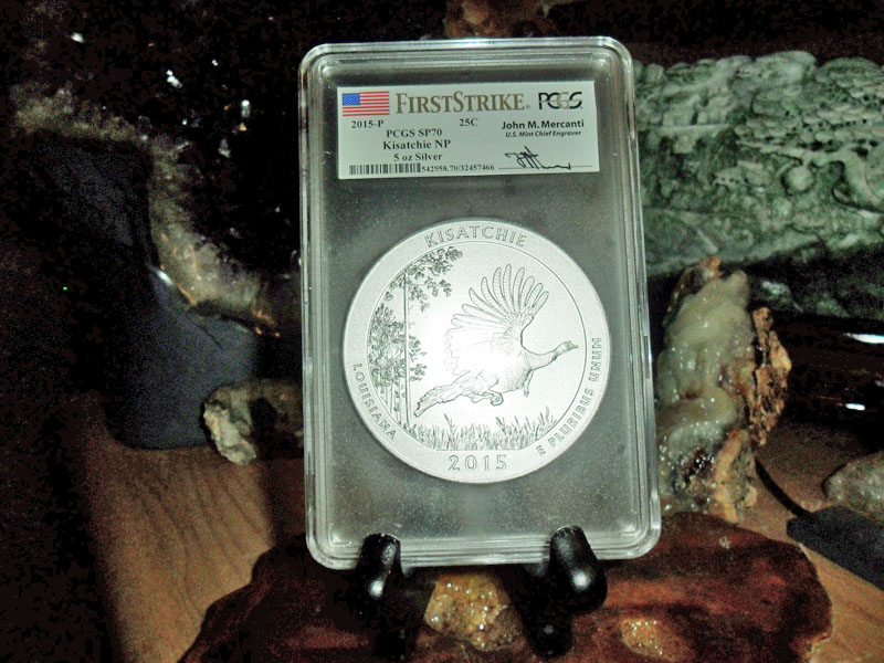 Exceptional and Beautiful 2015-P First Strike PCGS SP 70 KISATCHIE NATIONAL PARK 5 oz. SILVER QUARTER with JOHN M. MERCANTI Signature U.S. MINT CHIEF ENGRAVER. This is the Best Coin to add to Your Coin Collection. Population: 191 Hard to come by. Price: $425.00 and Shipping $15.00 Pictures show all Angles of this Beautiful 2015-P First Strike PCGS SP 70 KISATCHIE NATIONAL PARK 5 oz. SILVER QUARTER with JOHN M. MERCANTI Signature. You Won't Find This Online For This Price. Exceptional and Simply Breath Taking. More Pictures on Request. THE BEST of THE BEST.