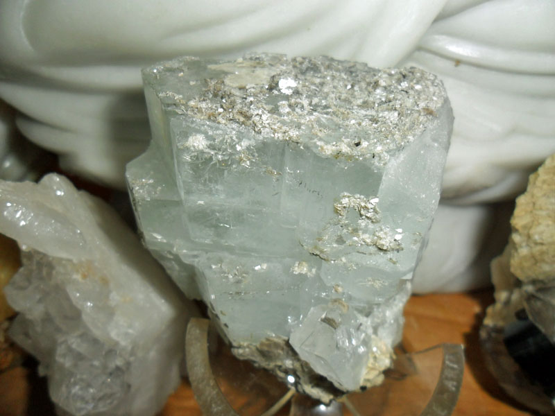 Item #195 NEW NEW This is an Exceptional Lustrous 1300 cts Aquamarine Crystal. Museum Aesthetic Top Quality Aquamarine Crystal. This Aquamarine Crystal is Perfect with Perfection and Just Breath Taking. It just Lustrous and Beautiful Full of Luster. Triple AAA++ Grade and Especially a One of a Kind. Aquamarine Crystal It is calming, soothing, and cleansing, and inspires truth, trust and letting go. In ancient lore, Aquamarine was believed to be the treasure of mermaids, and was used by sailors as a talisman of good luck, fearlessness and protection. It was also considered a stone of eternal youth and happiness. Aquamarine evokes the purity of crystalline waters, and the exhilaration and relaxation of the sea. It is calming, soothing, and cleansing, and inspires truth, trust and letting go. ... The name Aquamarine comes from the Latin aqua marinus, meaning "water of the sea," and refers to its sparkling ocean-like color. While evaluating an aquamarine, one of the most important criteria is the color intensity. Aquamarine is a rare semi-precious gemstone so the price should reflect this. The soothing energy of Aquamarine makes it a perfect companion to calm fears and phobias. Aquamarine is a “Stone of Courage and Protection”. Used often with the Throat Chakra, Aquamarine can be used to promote verbal self-expression. It is often used to enhance spiritual communication and clear communication blocks. Aquamarine is a stone of courage. Its calming energies reduce stress and quiet the mind. Aquamarine has an affinity with sensitive people. It can invoke tolerance of others and overcomes judgmentalism, giving support to those overwhelmed by responsibility. Measurements: 2 1/4” x 2 1/4” x 2” Very Well Kept in My Collection Cabinet Gallery. Origin: Gilgit Nagar Pakistan. Exceptional Price: $225.00 Shipping and Handling: $25.00 You Won't Find Anything in Such Quality Online. The Best of The Best. This is Just a Lustrous Breath Taking Aquamarine Crystal. Exceptional Piece to Ad to Your Unique Collection. More Pictures on Request. |